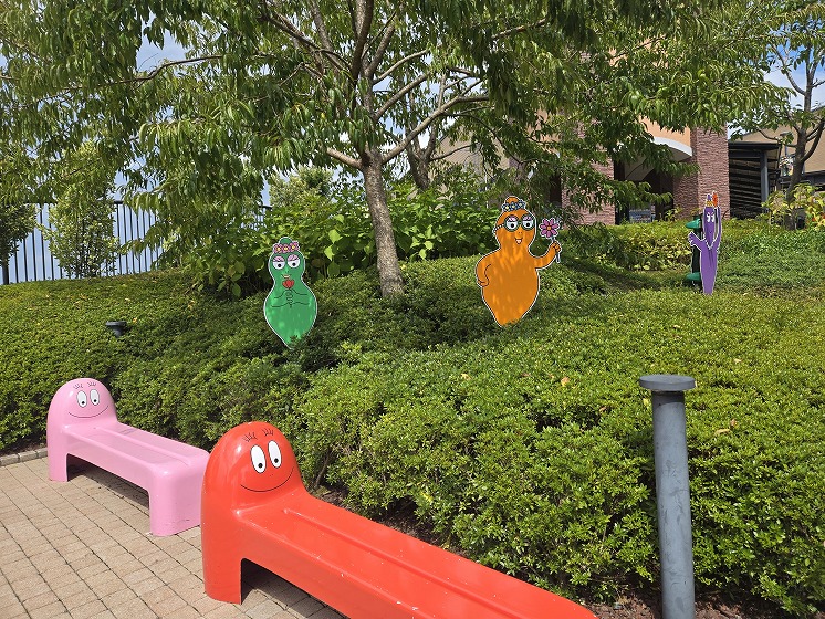 広場や通路のあちこちにも、バーバパパファミリーが隠れていて、探しながら歩くのも楽しかったです。ベンチになったバーバパパたちや、