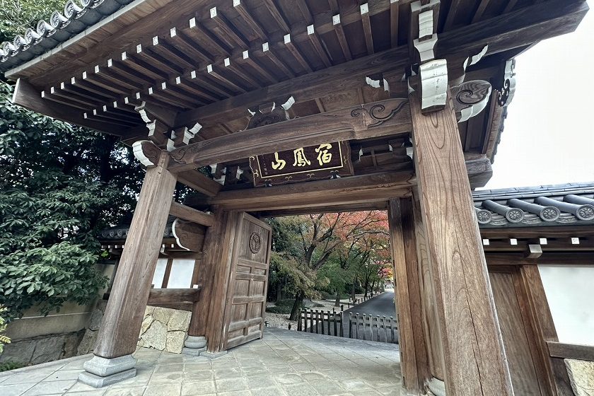 高円寺駅から徒歩で少し歩くと、急に街の雰囲気が変わり、立派な門と石碑が見えてきます。門をくぐると、紅葉した葉が美しい、静寂に包まれた別世界が広がっていました。