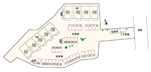 1階:1LDK、2階2LDK物件。A棟は『南西向き』で、B棟は『南東向き』です。1階はバルコニーでなくサンルームなので、急な雨でも洗濯物が濡れる心配がありません。1階2階共に、エアコン2台・追焚バス・浴室乾燥機・システムキッチン・TVドアホン・洗髪洗面化粧台・温水洗浄便座があり設備充実。物件の敷地内に、駐車場・駐輪場・ごみ置き場のほか、物置まであります。防犯カメラや24時間コールセンターもあるので安心して生活できます。物件名『エレガンス』は、「優雅」「上品」といった意味があります。