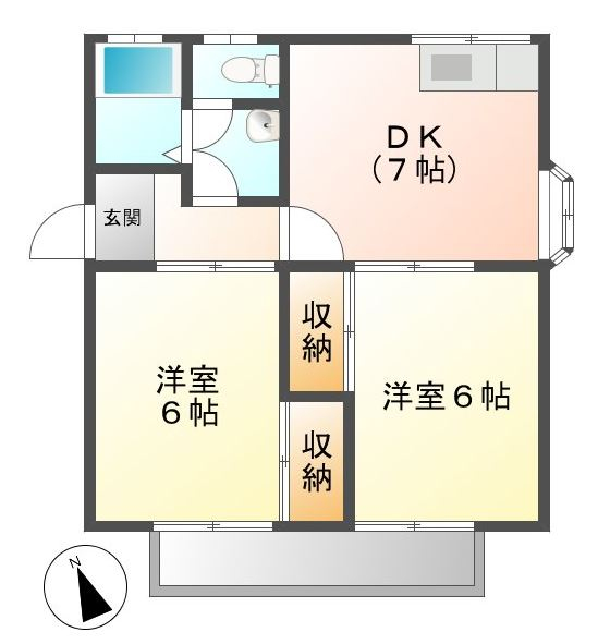B102:エアコン、駐車場<1台込:2台目3,000円>、1階(下階なし)、角部屋、バストイレ別、ウォシュレット、給湯、フローリング、バルコニー |