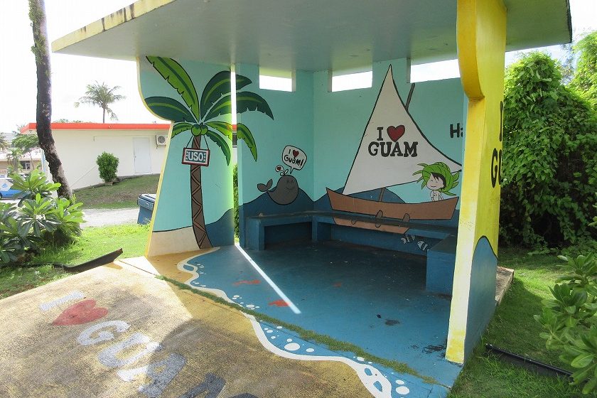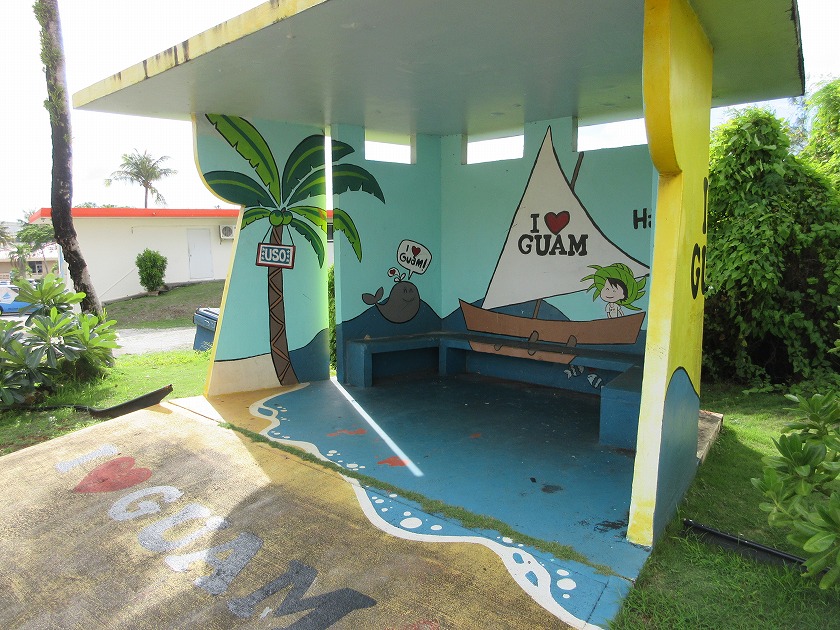 まずはキュートなバス停で「I ❤️ GUAM」!