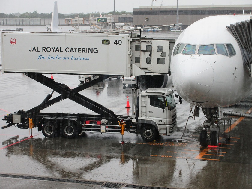 空港に着くと、機内食が飛行機に運び込まれているところに遭遇。トラックの荷台がグイーンと上がって、そのまま機内へ直行!「へぇ〜、こんな風に積み込むんだ!」と、出発前からちょっとした社会科見学気分です。