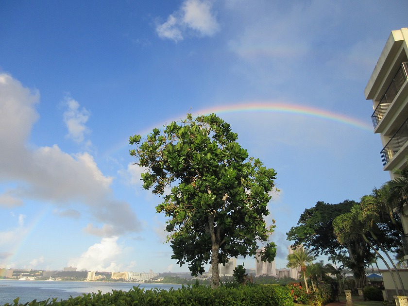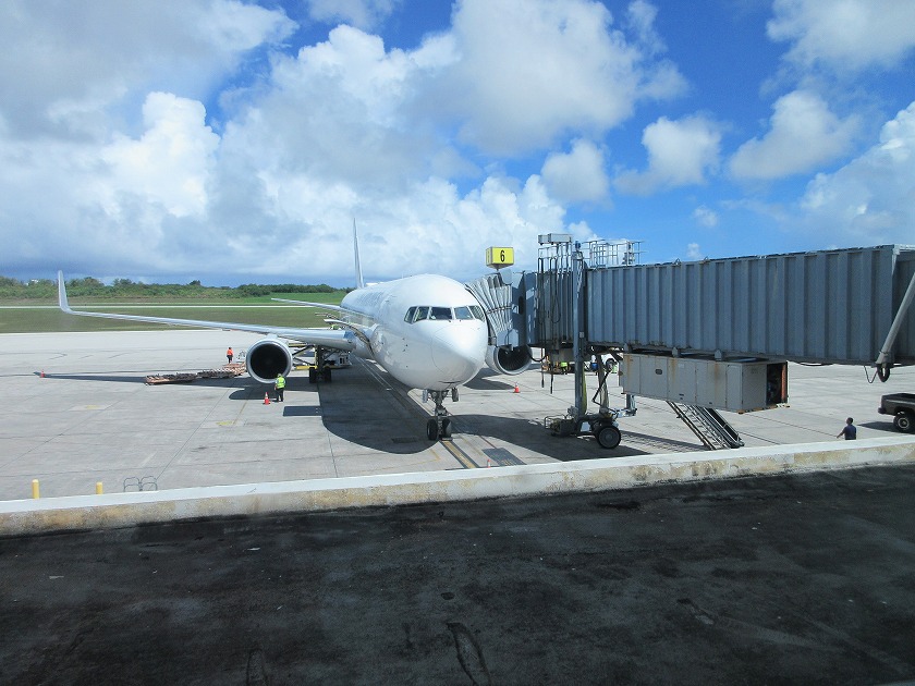 美味しい機内食を堪能していると、あっという間にグアムに到着! 雲は少しあるものの、太陽が眩しい!「やった、晴れてる!」と心の中でガッツポーズです。