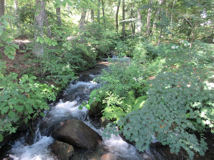 敷地内に入ると、まず目につくのは豊かな自然。澄んだ空気と、サラサラと流れる小川のせせらぎに癒されます。
