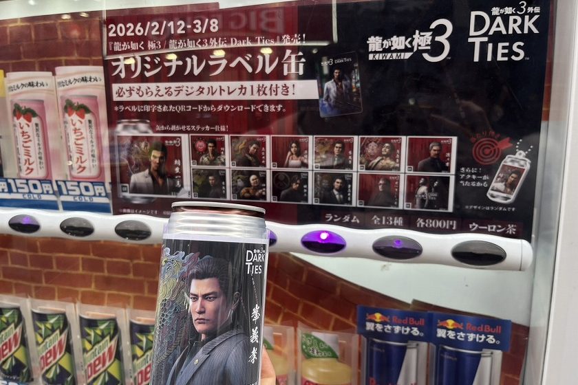 焼肉ライク、富士そばには行きましたが、まだまだあるみたいですね。 なになに……「サントリーコラボ缶(龍が如く 極3 / 龍が如く3外伝 Dark Ties ver.)」を全国のサントリー自販機で販売だと!?