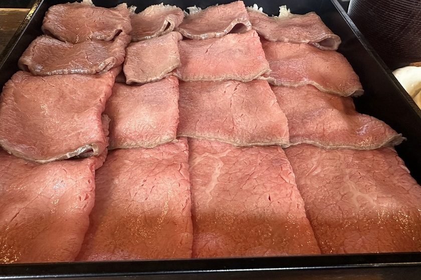 運ばれてきた肉重を見て、「おぉ、なかなかのボリューム!」と一人ごちていました。150gとは思えないほど、肉がぎっしり詰まっていて、蓋を開けた瞬間の香ばしい匂いがたまりません。