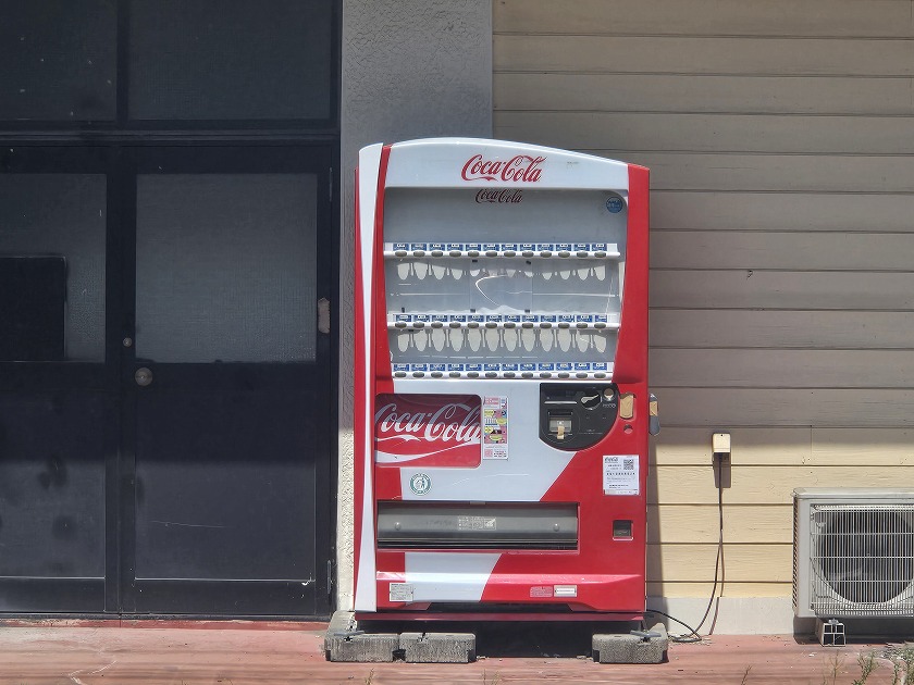 おお!コカ・コーラの自販機じゃないですか! 赤と白のコントラストが目にまぶしい! まさに真夏のオアシス!神様、仏様、自販機様~!