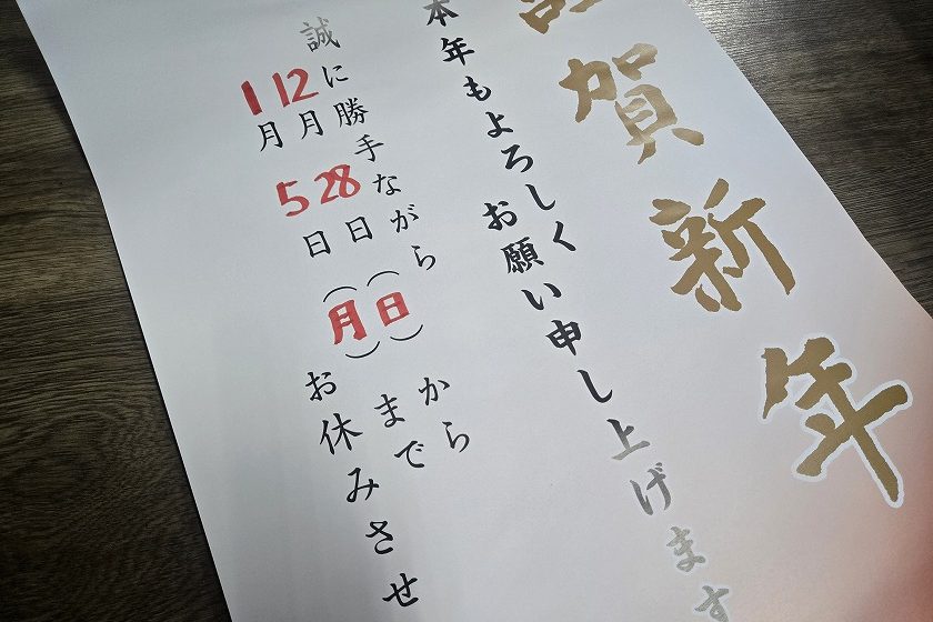 【休業期間】 2025年12月28日(日)~ 2026年1月5日(月)