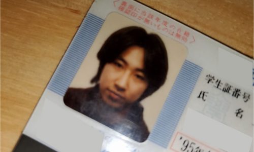 今回発見したものは、学生証。20歳くらいでしょうか?何となく時代を感じる。あの時の自分に言いたいことはたくさんありますが…