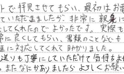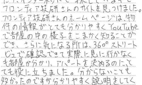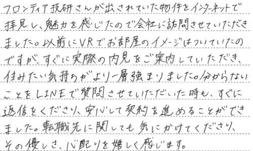 M・S様、この度はご契約いただきまして誠にありがとうございます。数ある不動産屋さんから弊社を選んでいただいたこと、とても嬉しく思います。事前…