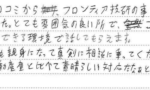 Y・A様 この度はご契約いただきまして誠にありがとうございます。不動産屋さんってコワいイメージがありますよね。弊社はアットホームな雰囲気でお客様…