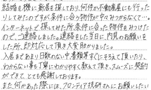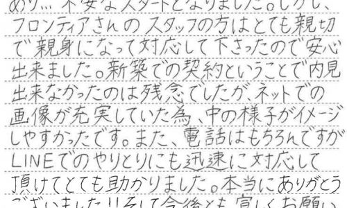 F.H様 この度はご契約いただきまして誠にありがとうございます。今回は急なお引っ越しに加え、予想外の事が多く起こり不安な思いもあったかと存じます…