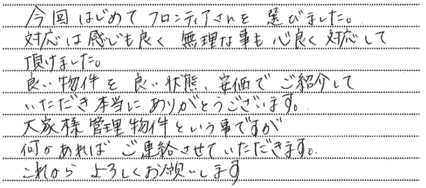 タイトなスケジュールの中、内覧から契約までスムーズに対応いただ…
