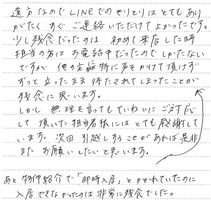 来店いただいた際の配慮が行き届かず、また管理会社との行き違いで残念な思いをされたこと、誠に申し訳ございませんでした。ご指摘いただきましてありがとうございます。J.Y様の貴重なご意見を無駄にしない様、改善してまいります。