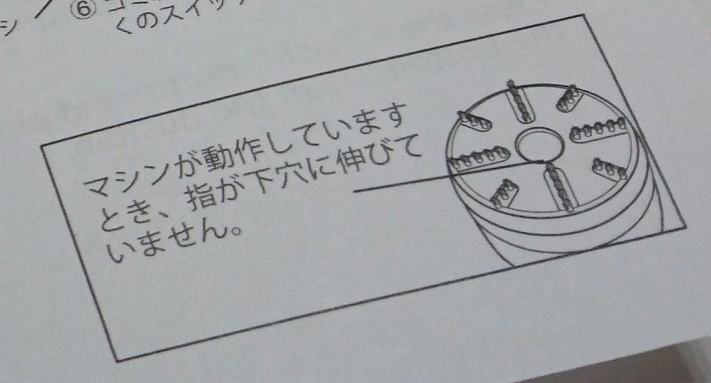 『マシンが動作していますとき、指が下穴に伸びていません。』